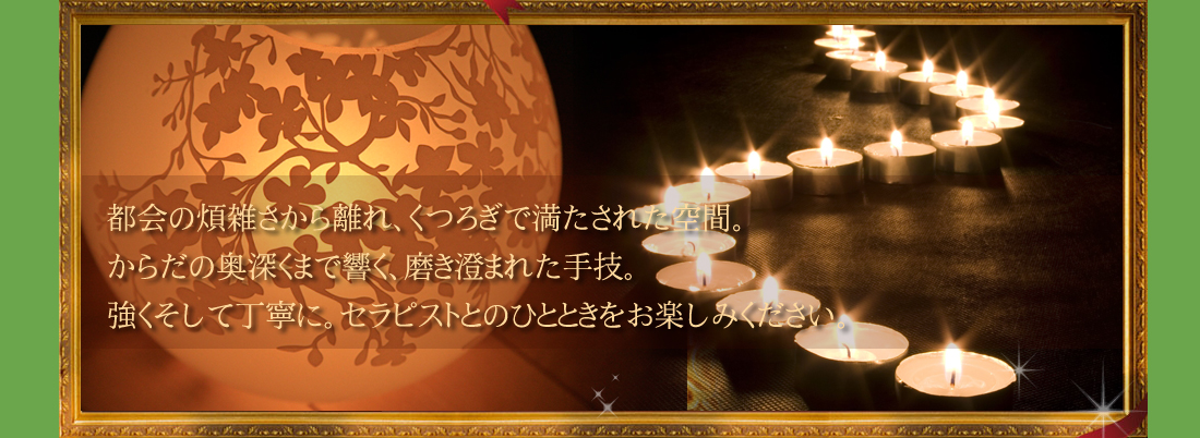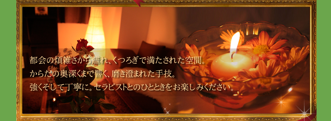 日々仕事をしていると心のオアシスを求めてしまいます。 あなたのヒーリングプレイスにしてほしい・・。可憐で美しい女性セラピストがあなたの来店をこころ待ちにしております。
